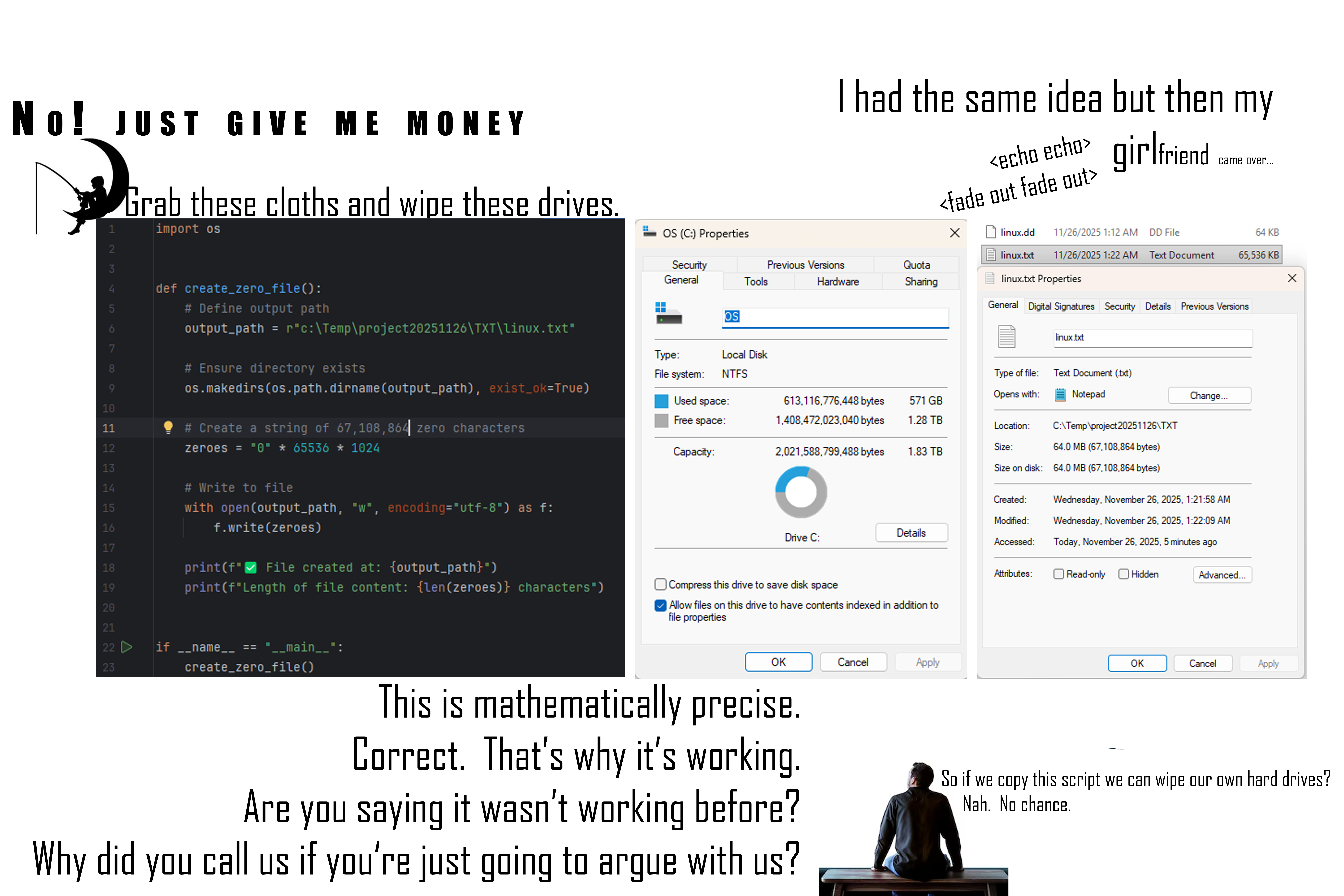 20251126.0118 De La Cruz, Michael: Imagine explaining to a Foreign Diplomat that someone wiped their virtual disk image while booted up. | Say again? | Yes your majesty the drive wiped itself while the operating system was booted.