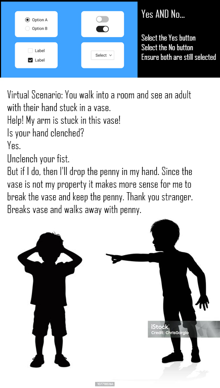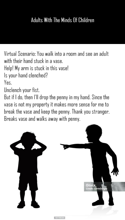 Virtual Scenario: You walk into a room and see an adult with their hand stuck in a vase.