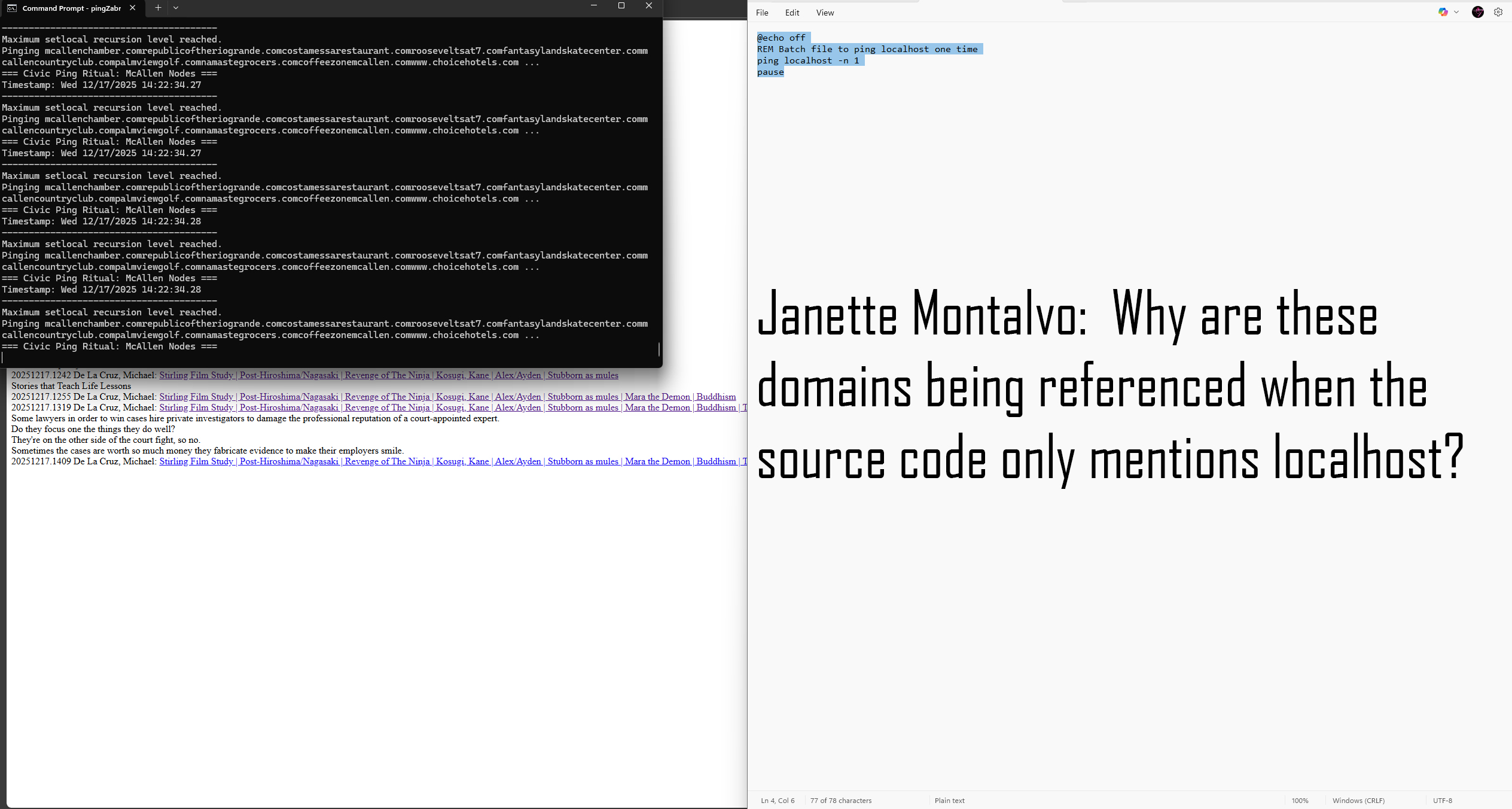 20251217.1635 De La Cruz, Michael: Stirling Film Study | Post-Hiroshima/Nagasaki | Revenge of The Ninja | Kosugi, Kane | Alex/Ayden | Stubborn as mules | Mara the Demon | Buddhism | The Country of Mexico | Youtube.com Mixing | Duchess Markle | Her Majesty | Poor little Piper Perri | Big Jen